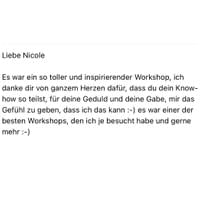 Nicole bringt es sehr gut rüber und geht auf die einzelnen Teilnehmer ein. Die vielen Tools, die sie uns empfiehlt, helfen sehr und überhaupt war der Tag sehr schön😍."
