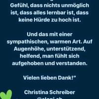 Nicole bringt es sehr gut rüber und geht auf die einzelnen Teilnehmer ein. Die vielen Tools, die sie uns empfiehlt, helfen sehr und überhaupt war der Tag sehr schön😍."